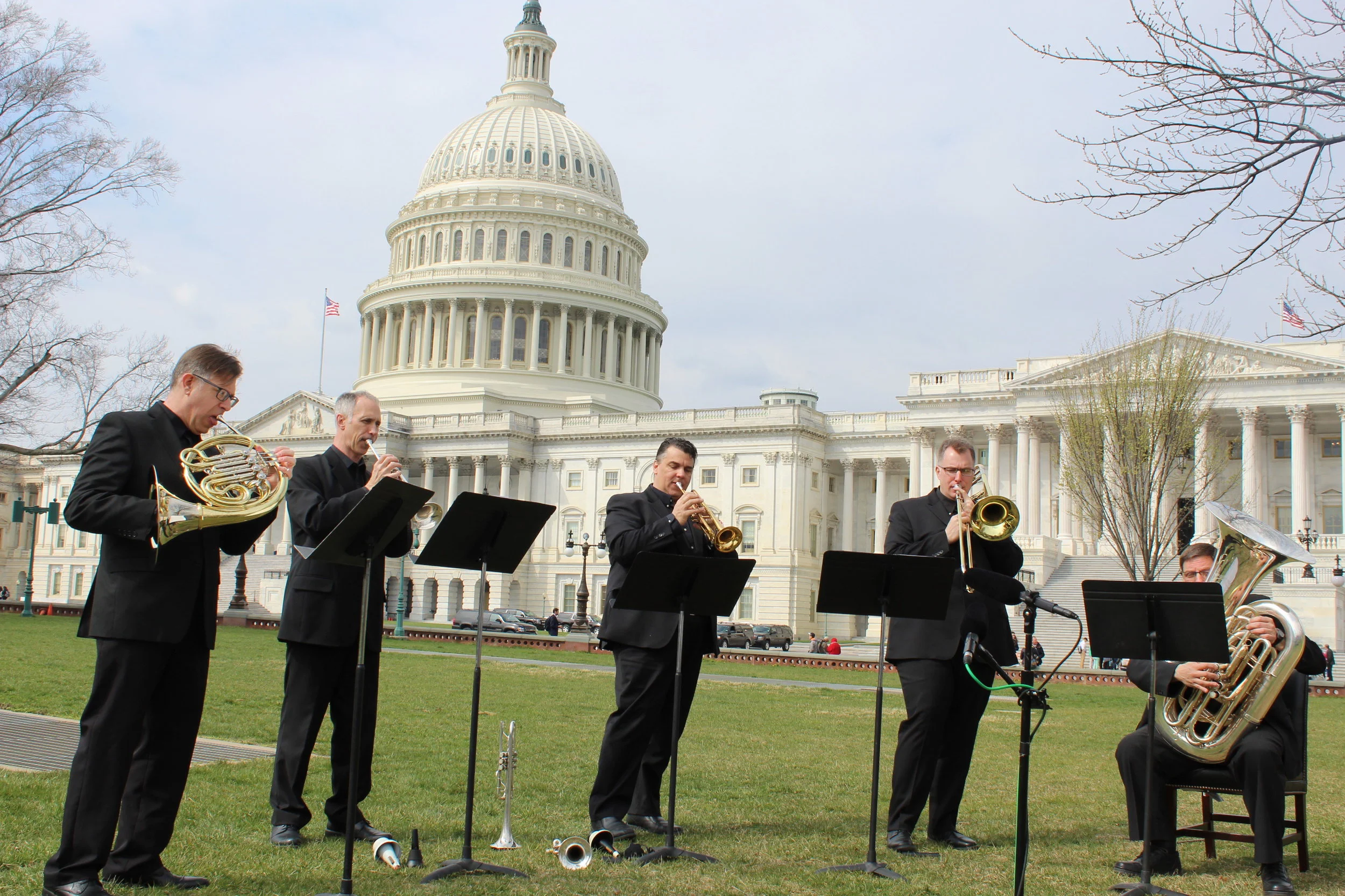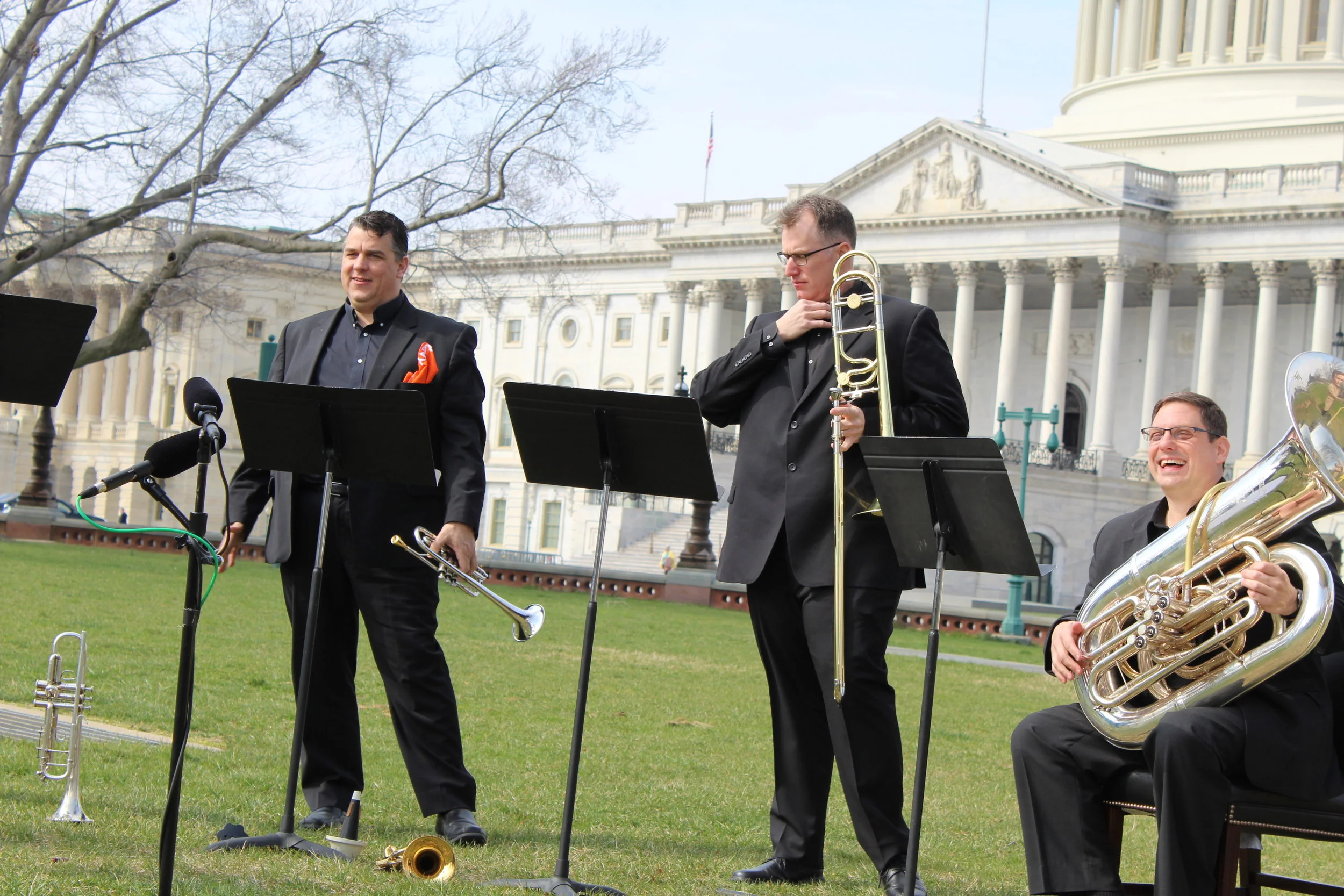 Next on the itinerary was a pop up performance on the East Lawn of the U.S. Capitol. Senator Chuck Schumer (NY) invited a quintet of Albany Symphony musicians to the U.S. Capitol to showcase the Albany Symphony and to raise awareness of the important role orchestras play in reshaping our shared history. The Brass Quintet performed selections from Gershwin's Porgy & Bess, gave a node to the Washington Post with an arrangement of Sousa's famous march, and celebrated our favorite NPR station with a musical shout out to WAMC-Albany. Can you name WAMC's theme song?